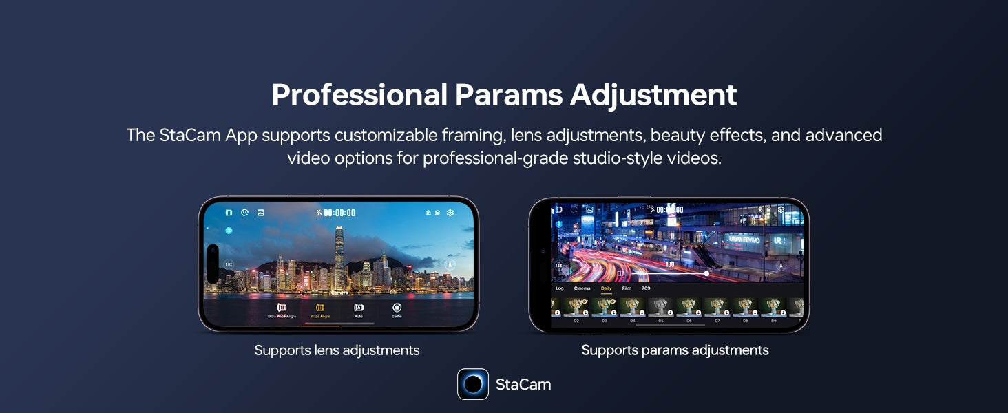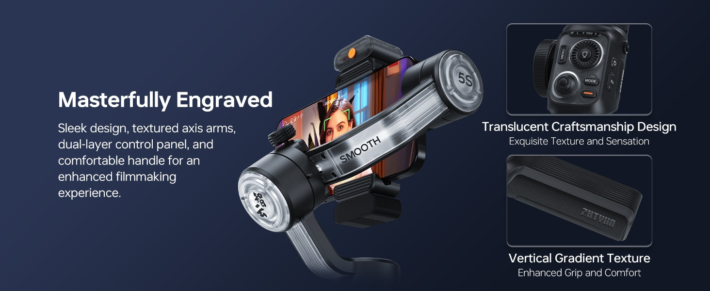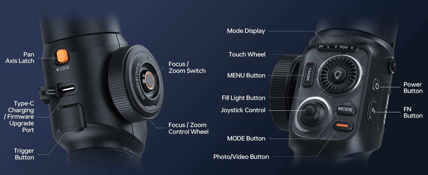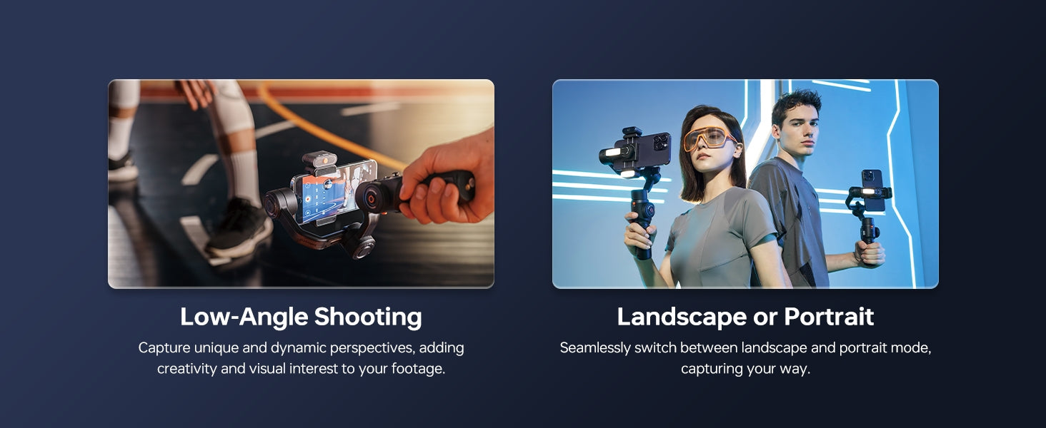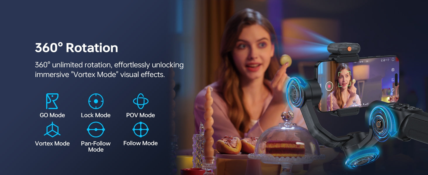 (2)Pro-Grade Stabilisation – 3-axis stabiliser structure ensures cinematic smoothness for dynamic shots and fast movements.