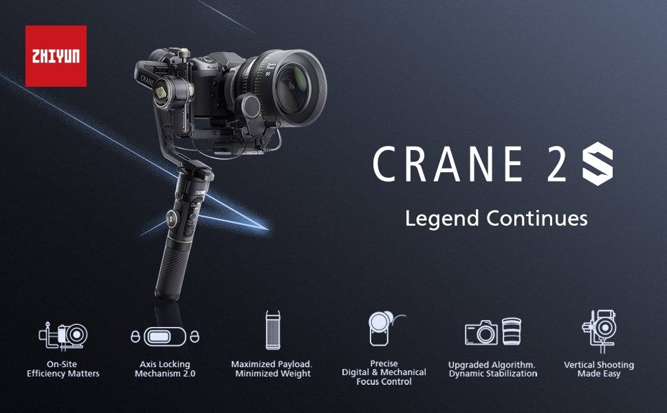Highly optimized in motor control algorithms and motor power, CRANE 2S handles large cameras such as the BMPCC 6K, Panasonic S1H, Canon EOS 1DX Mark II, Nikon D850 with total ease. More than that, you can also mount multiple accessories on it.