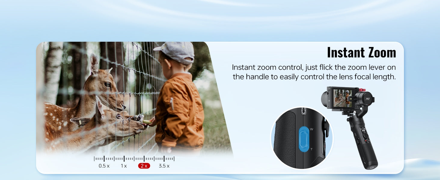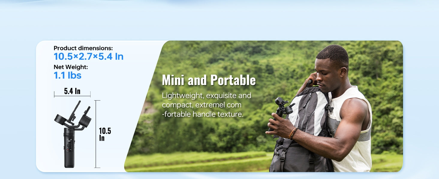 (1)Ultra-Portable & Lightweight – Weighs only 500g with an ergonomic handle for all-day shooting comfort, ideal for travel and daily vlogging.