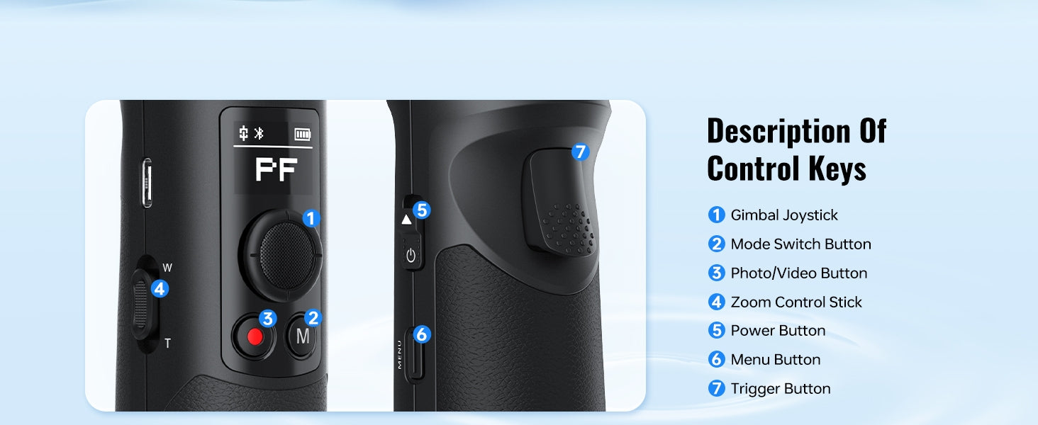 (3)Wireless Control with WiFi & Bluetooth – Take photos and record videos remotely using the built-in handle buttons – no cables needed.