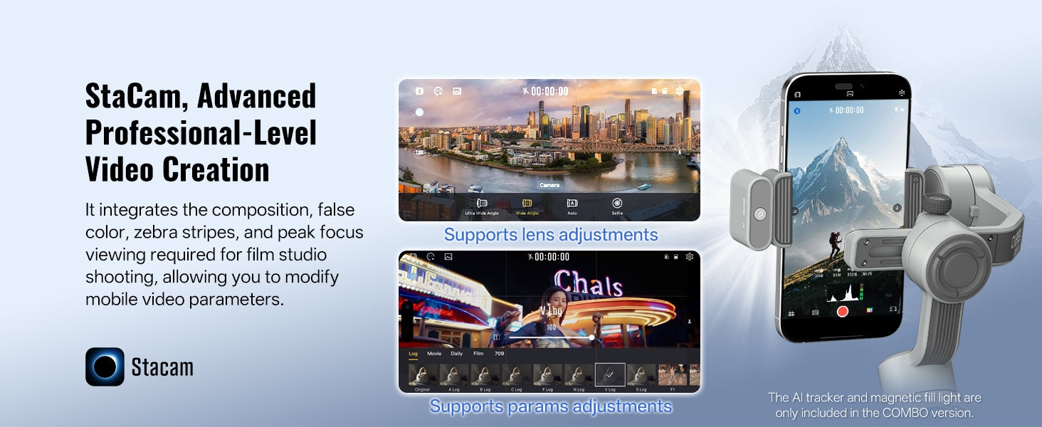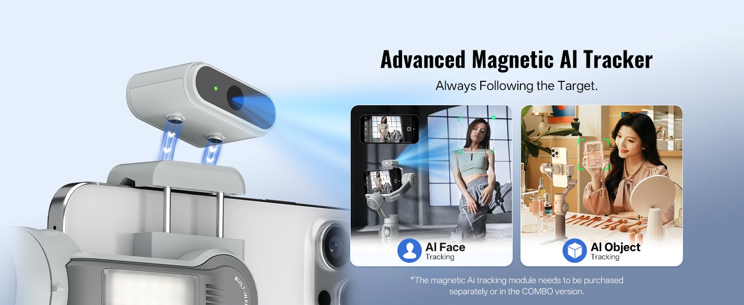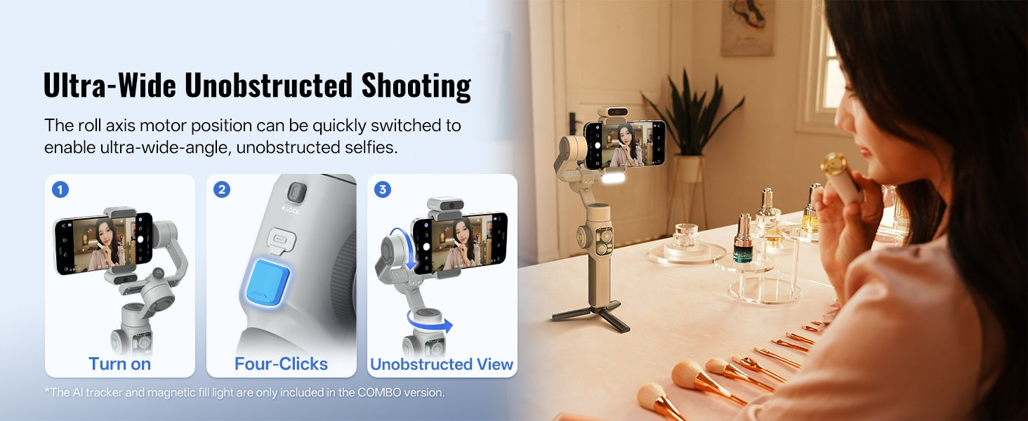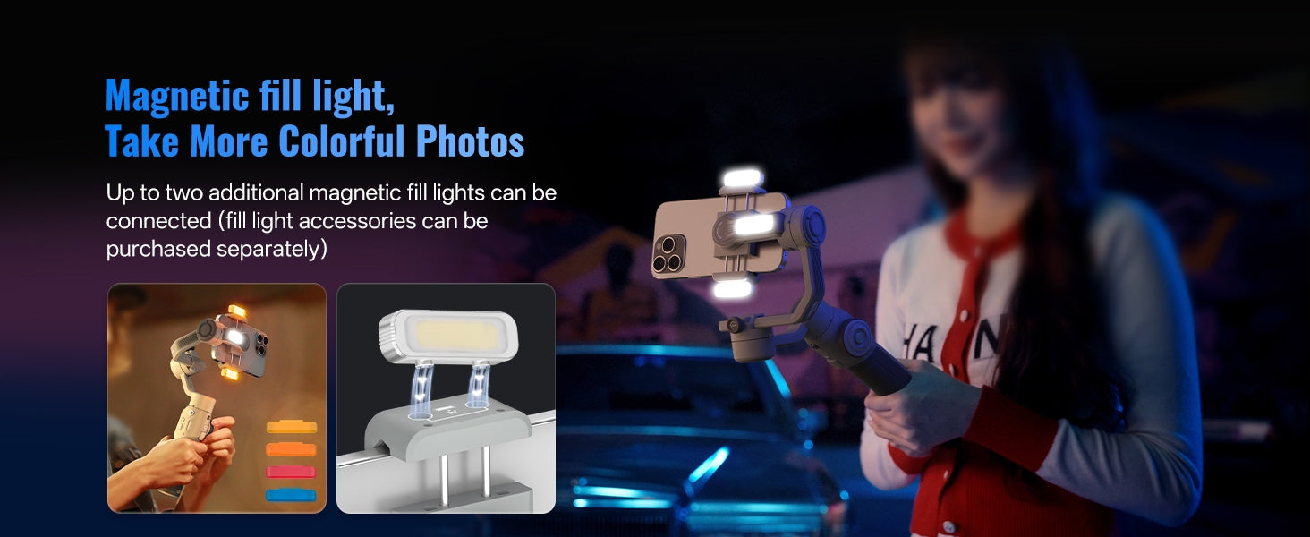 (2)Dual Fill Lights (Built-in & Magnetic): Achieve perfect lighting in any scenario with built-in and optional magnetic lights (included in Combo version).