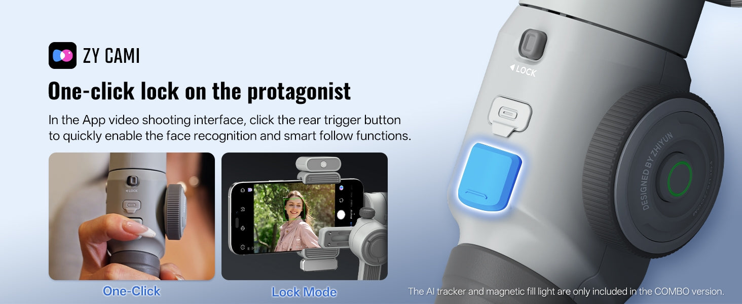 (3)AI Face/Object Tracking + Gestures: Smart tracking locks onto your subject with one click or hand gesture, even without the app via AI module.